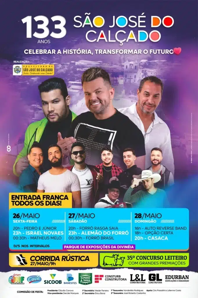 “A expectativa para a festa é imensa! Além de comemorar 133 anos de história e costumes regionais, como a Corrida Rústica do Grim e o tradicional concurso leiteiro, grandes shows nacionais, como Israel Novaes, Alemão do Forró e Casaca, esse evento tem um impacto significativo em nossa cidade”, disse o prefeito.