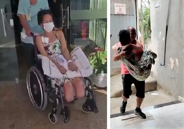 Dora saiu do hospital depois de 48 dias e segue em casa onde tem dificuldades de locomoção (Fotos Reprodução).