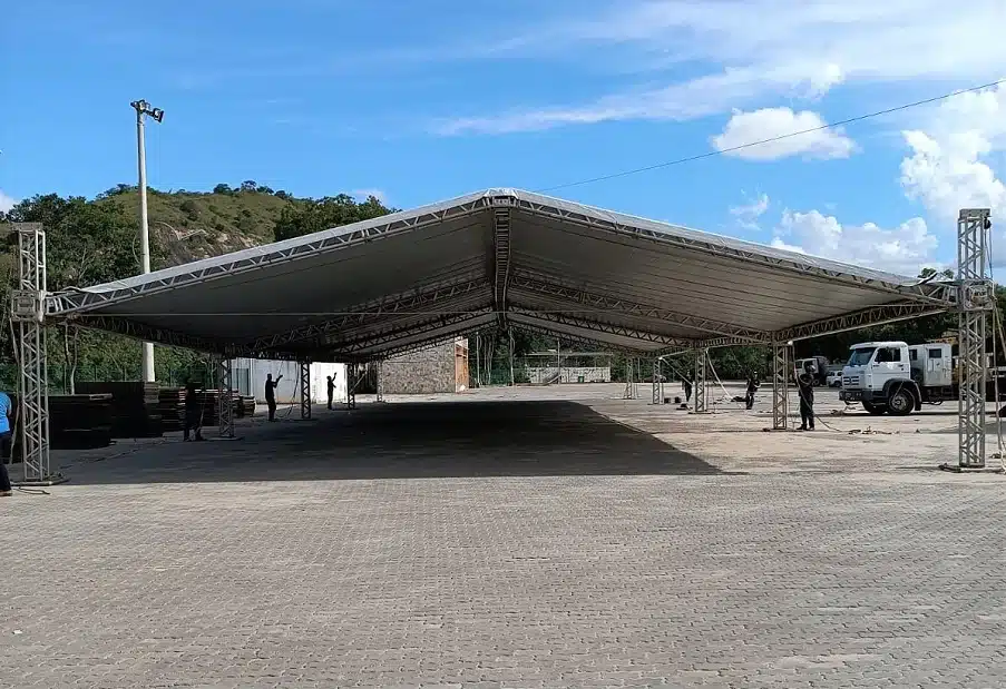 A estrutura já está sendo montada no Parque de Exposições de Jerônimo Monteiro (Foto Divulgação).