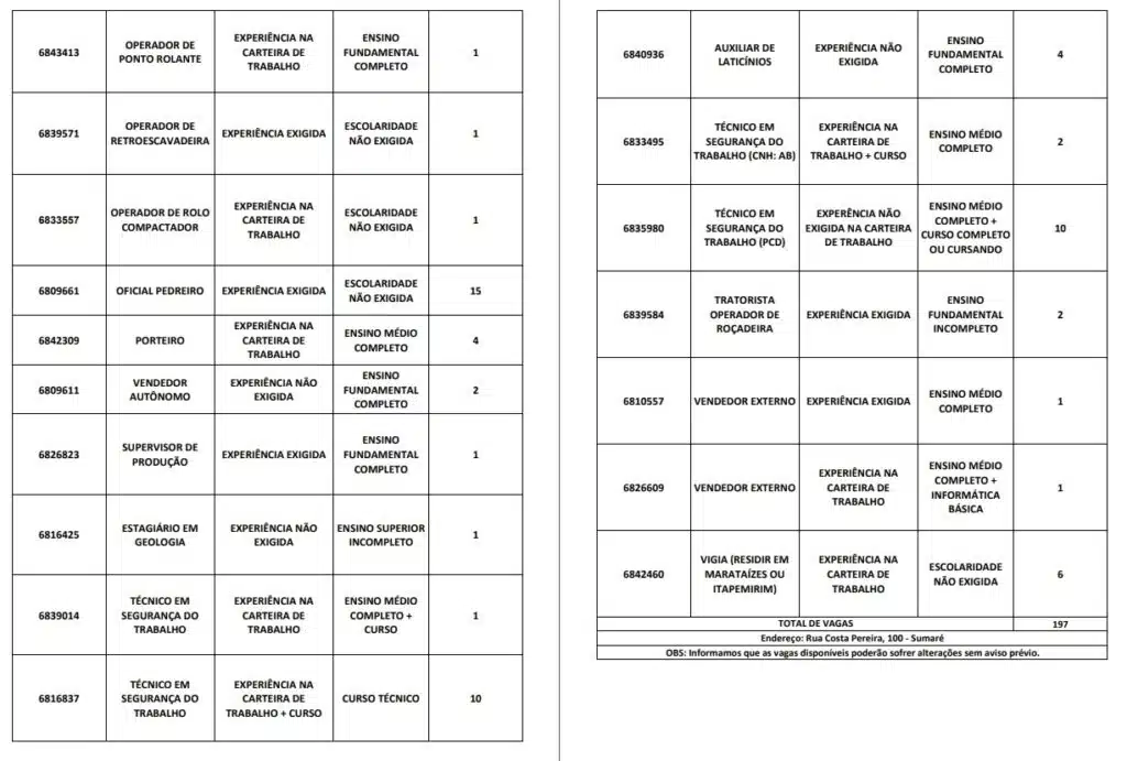 As oportunidades de emprego são para diversos cargos e níveis de escolaridade e para cidades do Sul do ES.