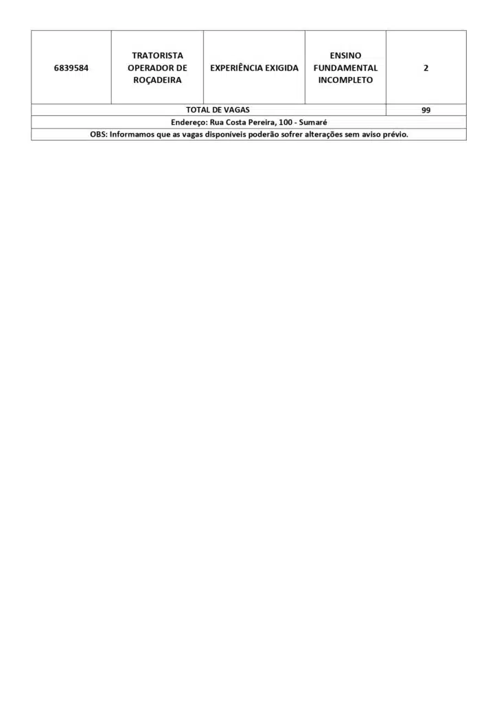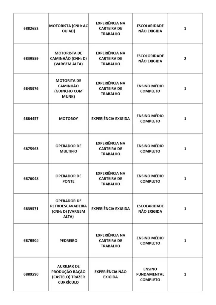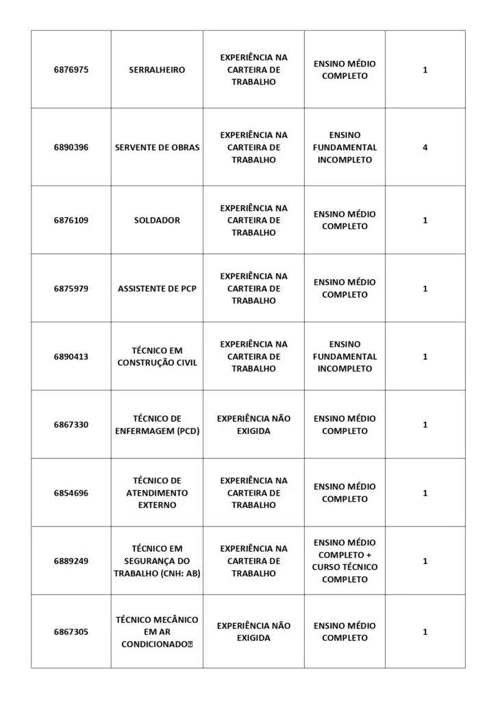 As oportunidades de emprego são para diversos cargos e níveis de escolaridade e para cidades do Sul do ES