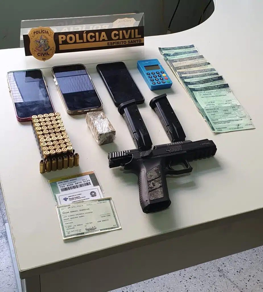 A Polícia Civil do Espírito Santo, por meio da Divisão Especializada de Homicídio e Proteção à Pessoa (DHPP) de Guarapari, prendeu três suspeitos e apreendeu uma pistola, munições e drogas, durante uma operação com a Polícia Militar do Espírito Santo (PMES), executada na última sexta-feira (19).