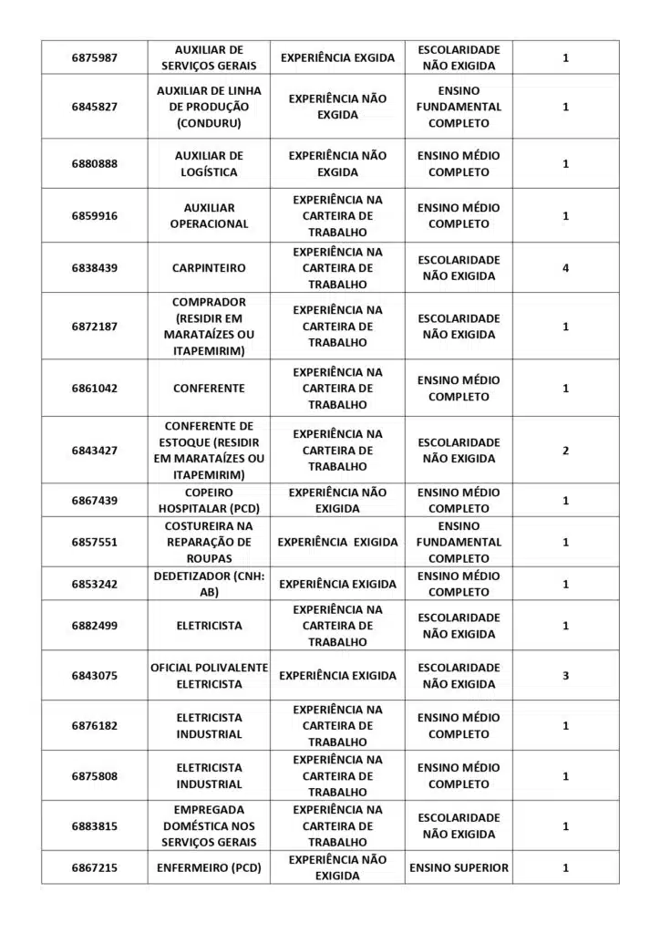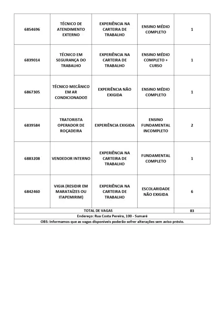 As oportunidades de emprego são para diversos cargos e níveis de escolaridade e para cidades do Sul do ES. No entanto, é preciso fazer um cadastro no Sine Cachoeiro para concorrê-las.