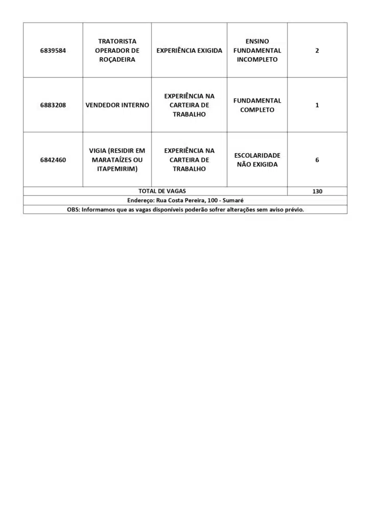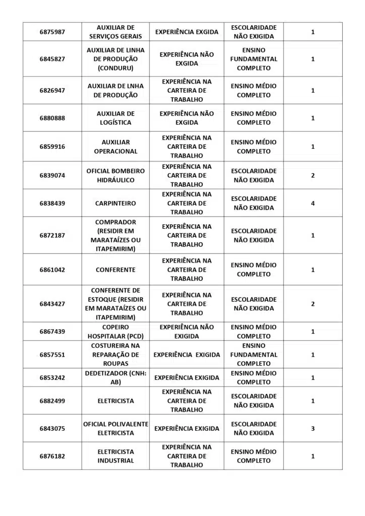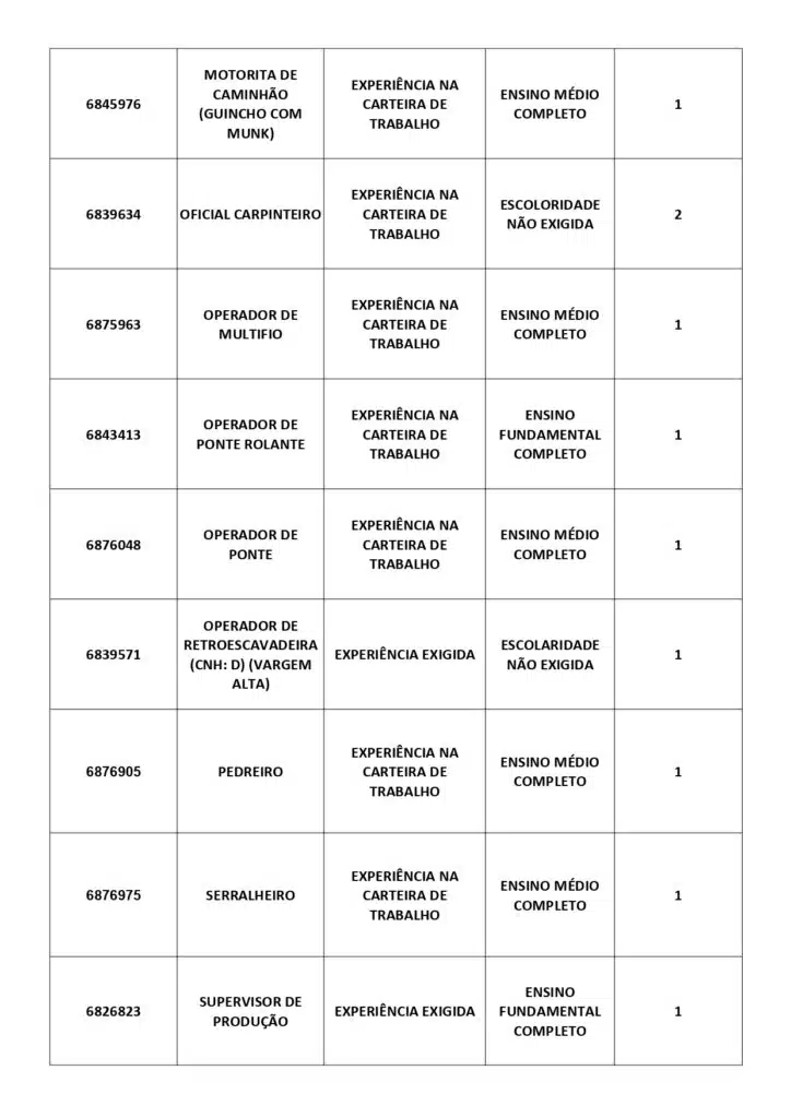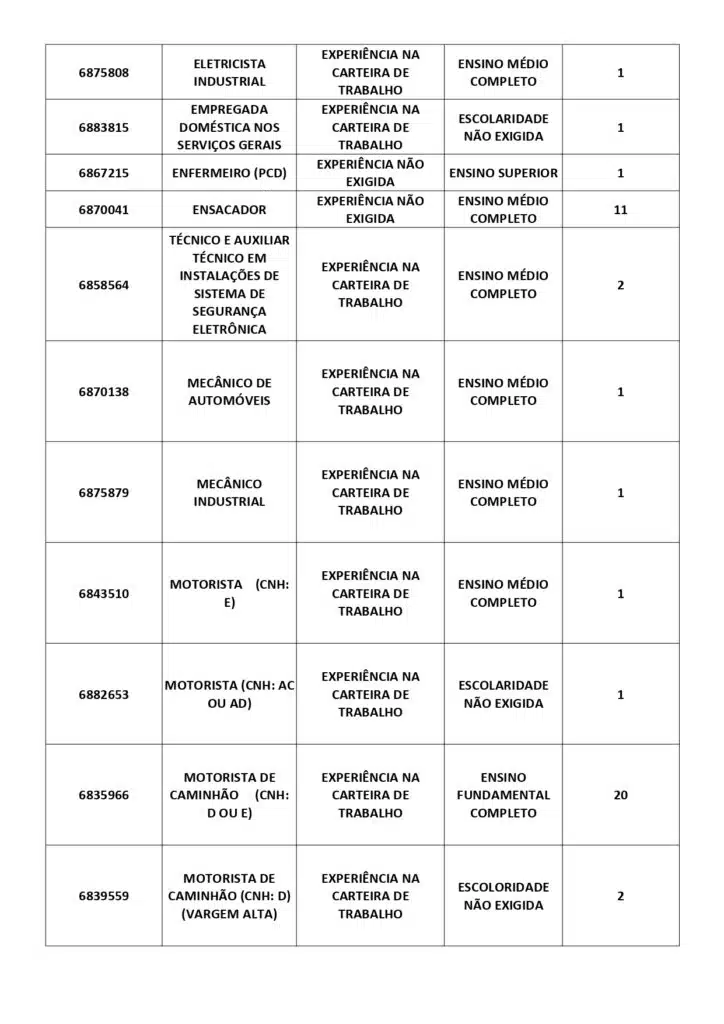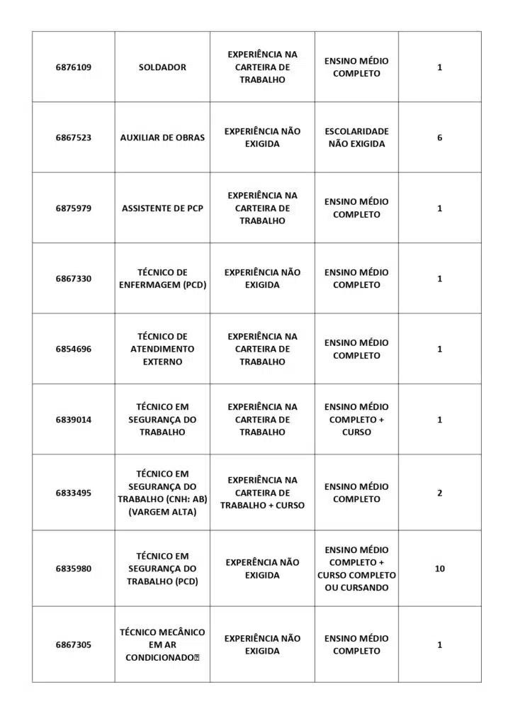 As oportunidades de emprego são para diversos cargos e níveis de escolaridade e para cidades do Sul do ES.