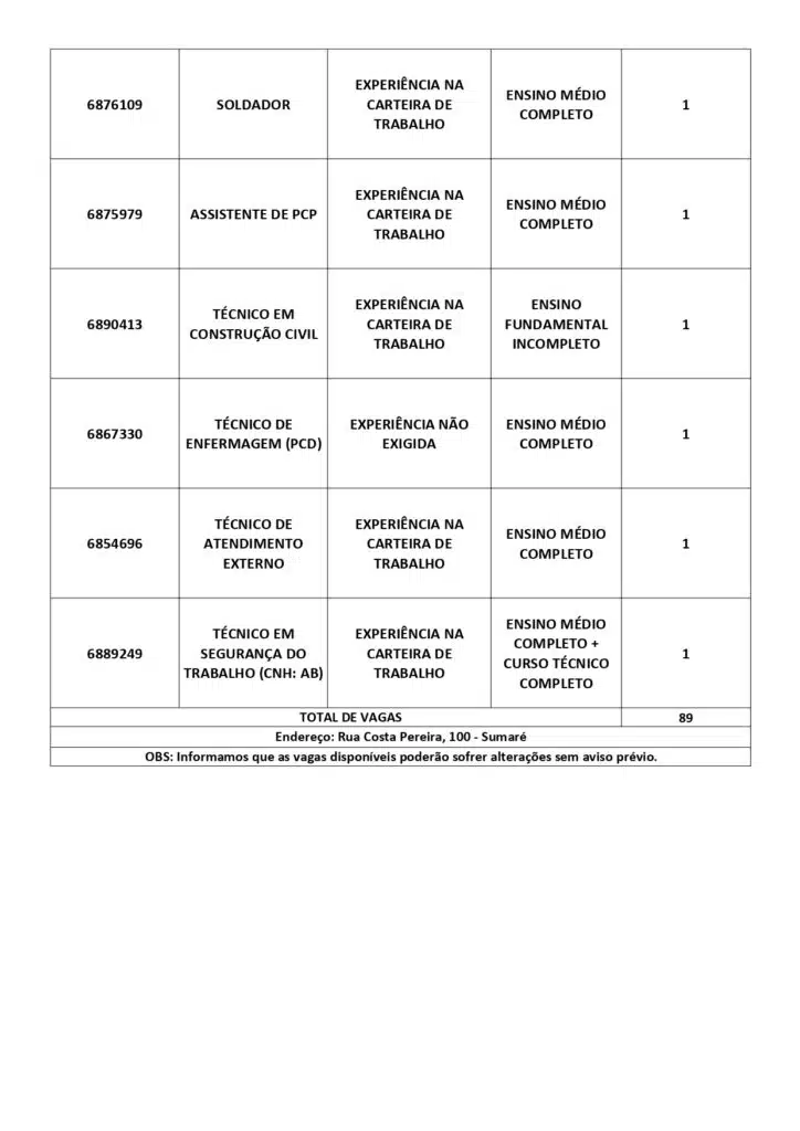 As oportunidades de emprego são para diversos cargos e níveis de escolaridade e para cidades do Sul do ES