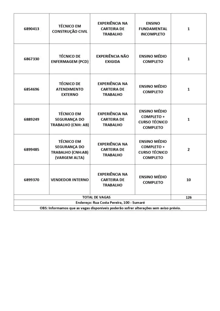 Há vagas! Sine Cachoeiro oferta 126 oportunidades de trabalho
