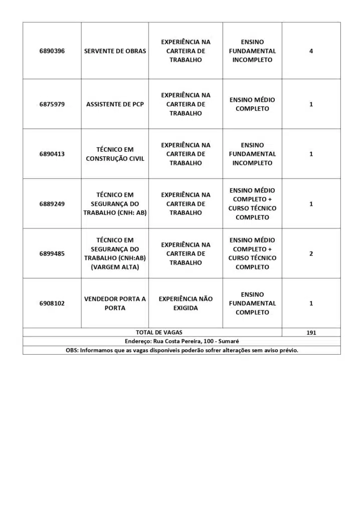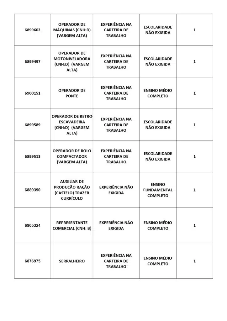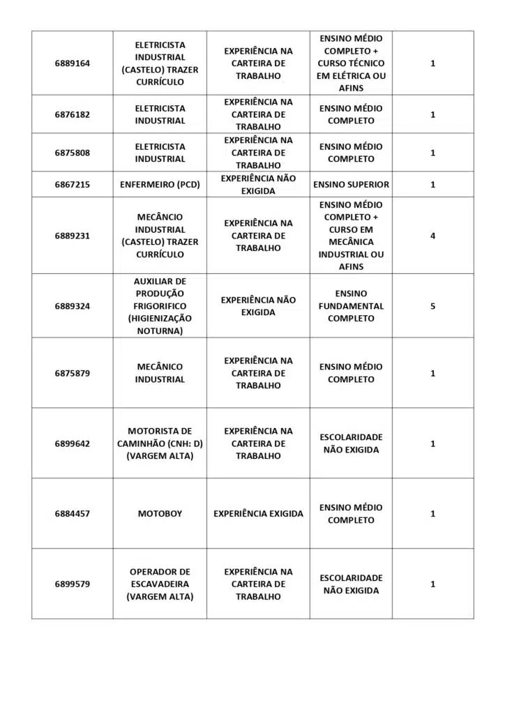 As oportunidades de emprego são para diversos cargos e níveis de escolaridade e para cidades do Sul do ES