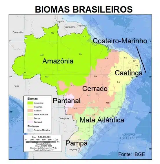O país deve sua grande diversidade biológica à presença de cinco biomas: Mata Atlântica, Cerrado, Caatinga, Pampa e Amazônia