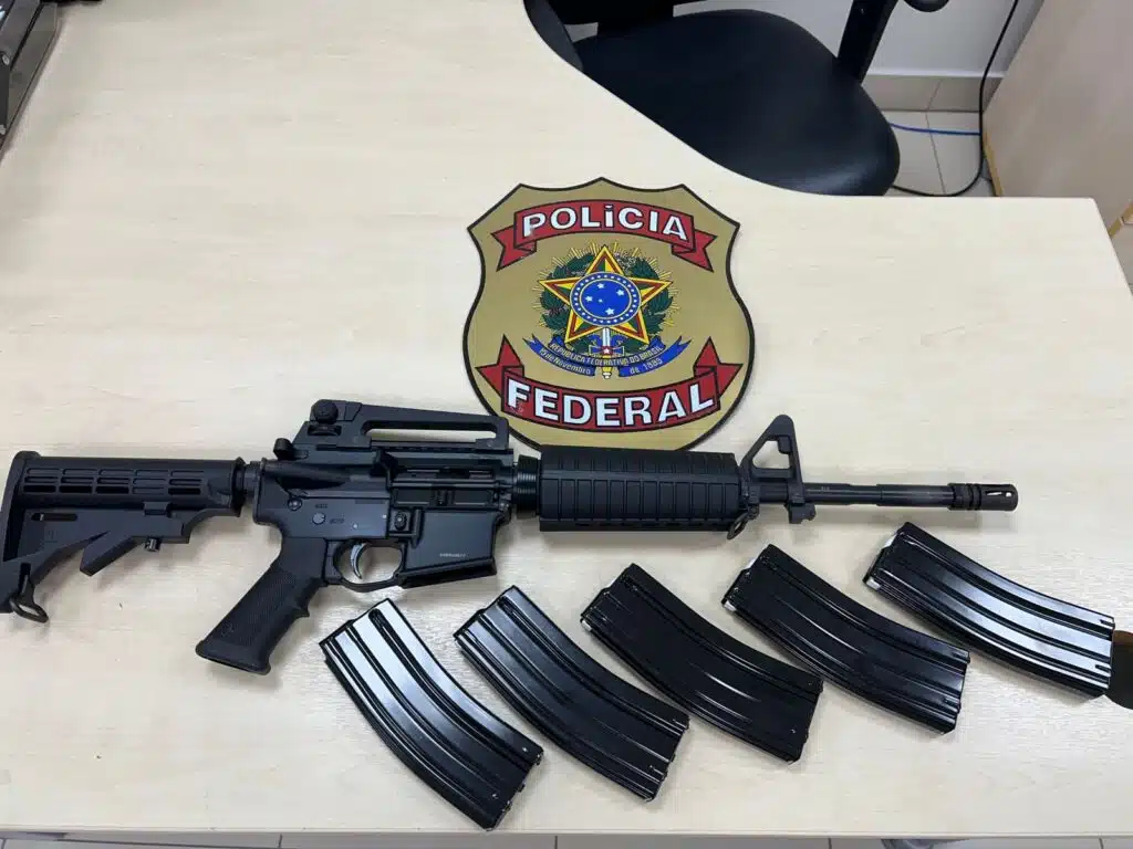 Receba as principais notícias no seu WhatsApp! clique aquiSegundo investigações que estão a cargo da Delegacia de Repressão aos Crimes Patrimoniais e ao Tráfico de Armas (DELEPAT/PF), o armamento foi adquirido junto ao fabricante no Brasil por um traficante preso na “Operação Downfall” com uso de documentos falsos, inclusive um registro de CAC (Centro Virtual de Atendimento ao Contribuinte) ideologicamente falso.