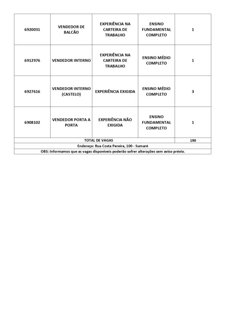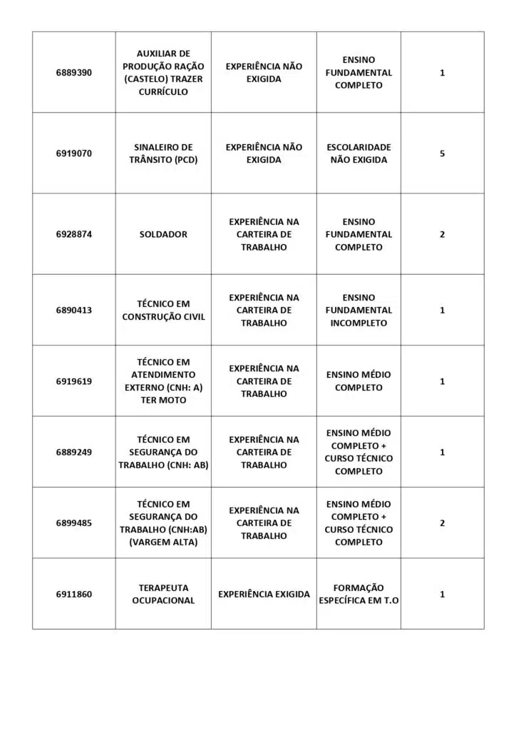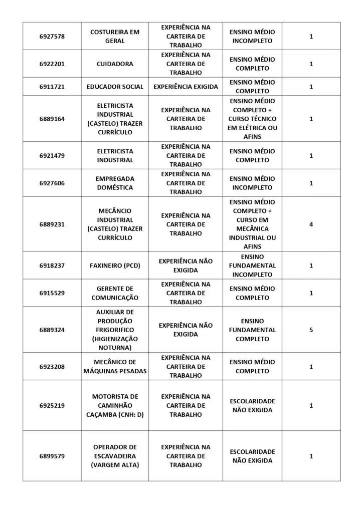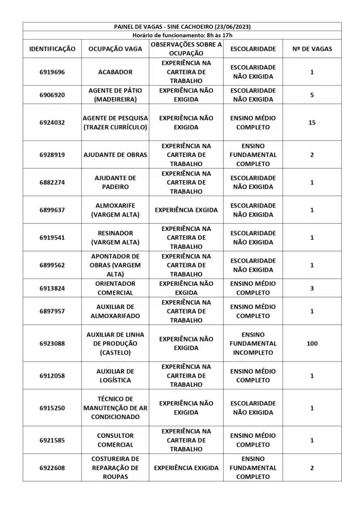 Receba as principais notícias no seu WhatsApp! clique aquiAs oportunidades de emprego são para diversos cargos e níveis de escolaridade e para cidades do Sul do ES. No entanto, é preciso fazer um cadastro no Sine Cachoeiro para concorrê-las.