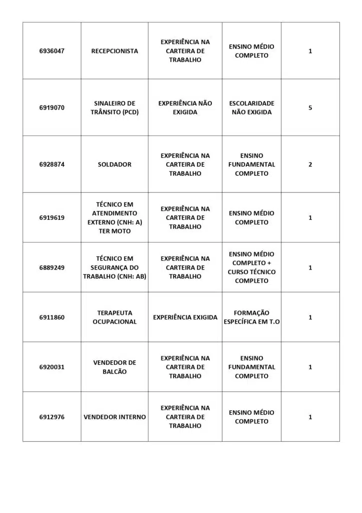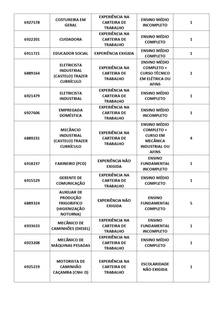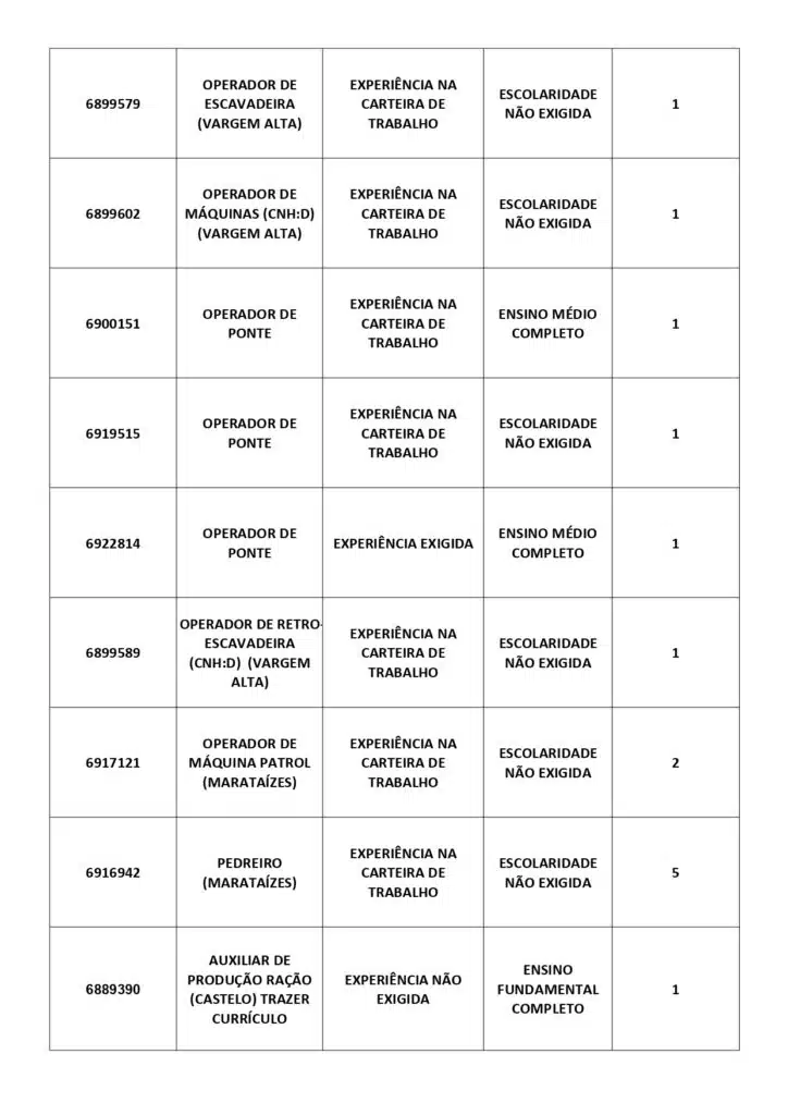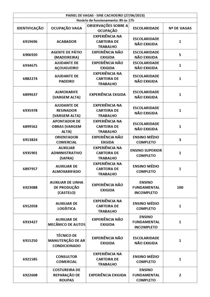 As oportunidades de emprego são para diversos cargos e níveis de escolaridade e para cidades do Sul do ES. No entanto, é preciso fazer um cadastro no Sine Cachoeiro para concorrê-las.