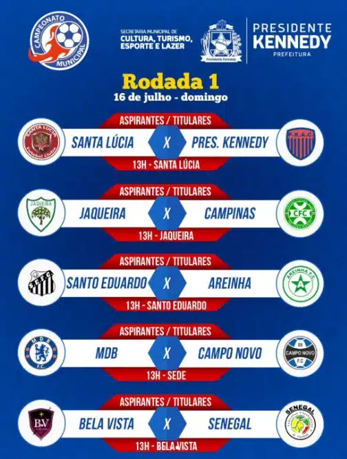 Começa, a partir deste sábado (15), o Campeonato Municipal de Futebol de Presidente Kennedy.