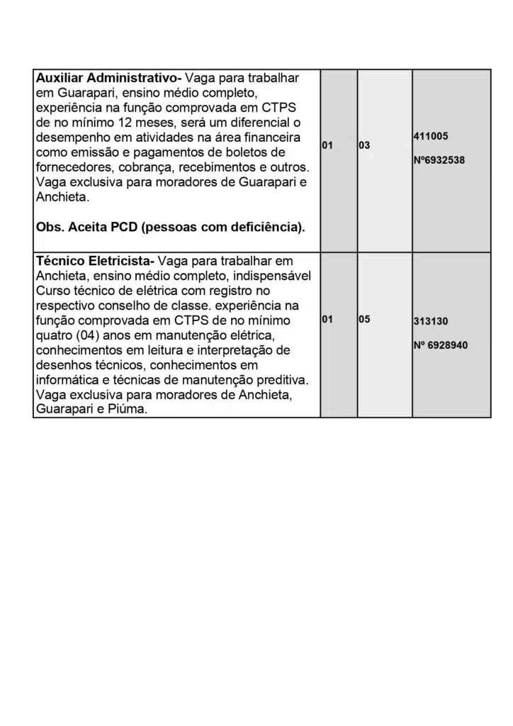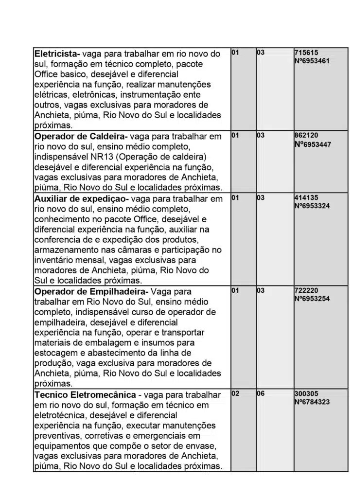 Empresas ofertam empregos em Anchieta e região. Confira!