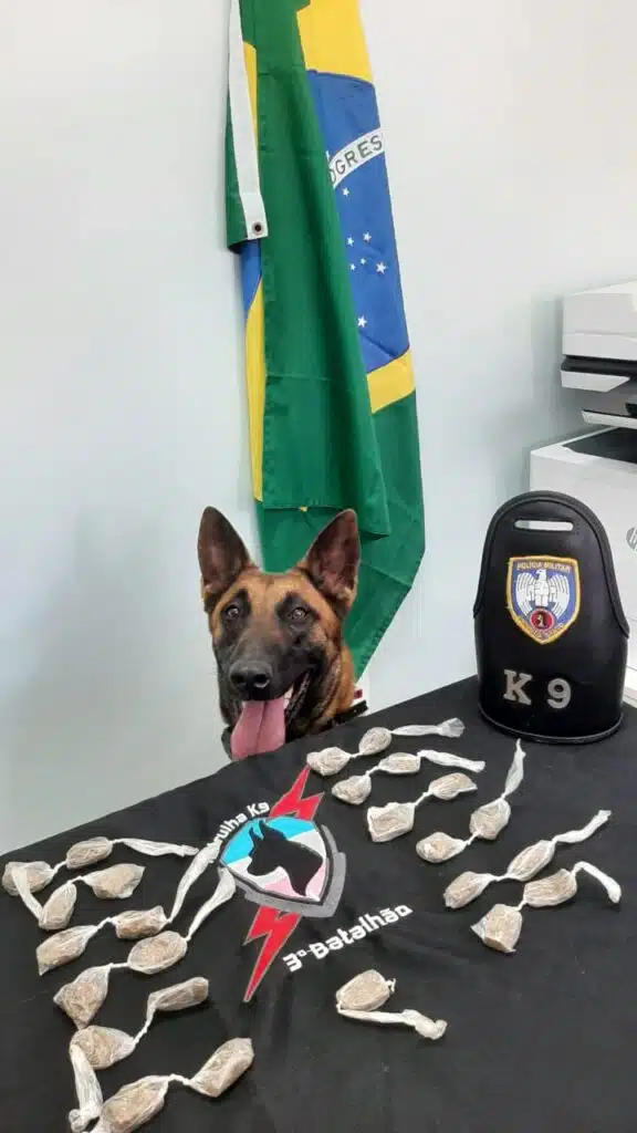 No bairro João Marcelino de Freitas, conhecido como “Vala”, a polícia recebeu denúncias sobre outros indivíduos que atuavam com o tráfico na região, bem como de locais onde possivelmente traficantes estariam escondendo drogas. “Assim, com apoio da cadela Alga, foram encontradas 25 buchas de maconha escondidas entre bananeiras, em uma área de mata”, relatou.