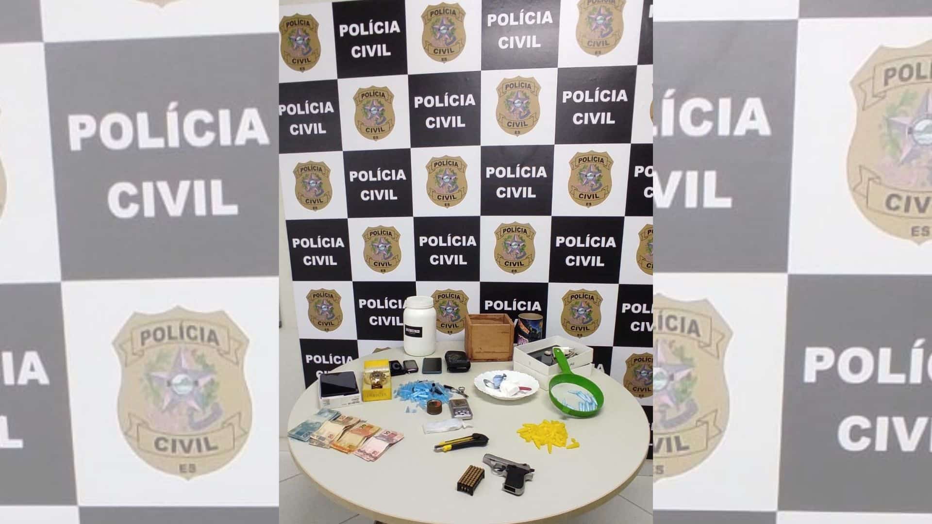 No local, a polícia ainda apreendeu 60 munições calibre .22, uma balança de precisão, um estilete, um tablet, um relógio, uma peneira plástica, um dichavador, uma tesoura pequena e um Ipad. O material e o suspeito foram encaminhados para a Delegacia do município, onde o rapaz foi autuado em flagrante por tráfico de drogas e posse ilegal de arma de fogo. Em seguida, o suspeito foi conduzido para o Centro de Detenção Provisória de Cachoeiro, onde ficará à disposição da justiça.