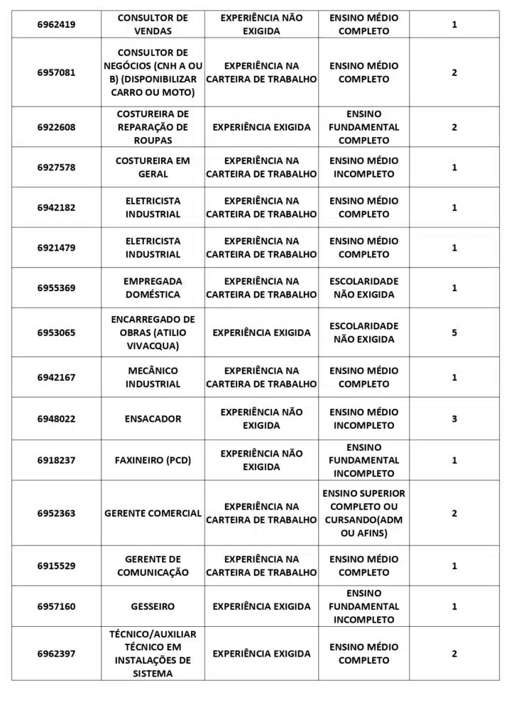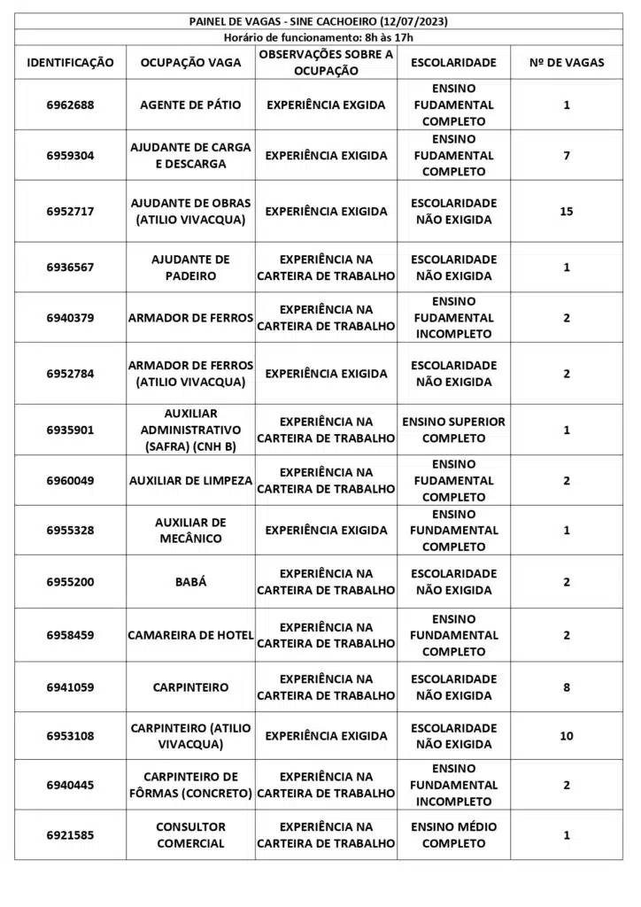 Receba as principais notícias no seu WhatsApp! clique aquiAs oportunidades de emprego são para diversos cargos e níveis de escolaridade e para cidades do Sul do ES. No entanto, é preciso fazer um cadastro no Sine Cachoeiro para concorrê-las.