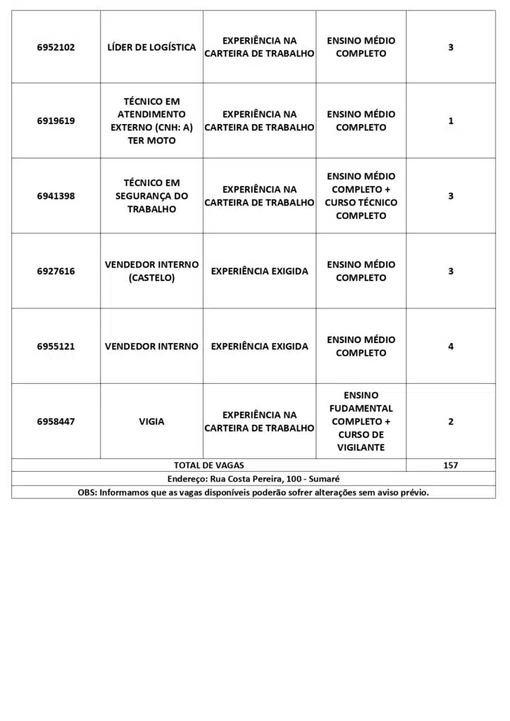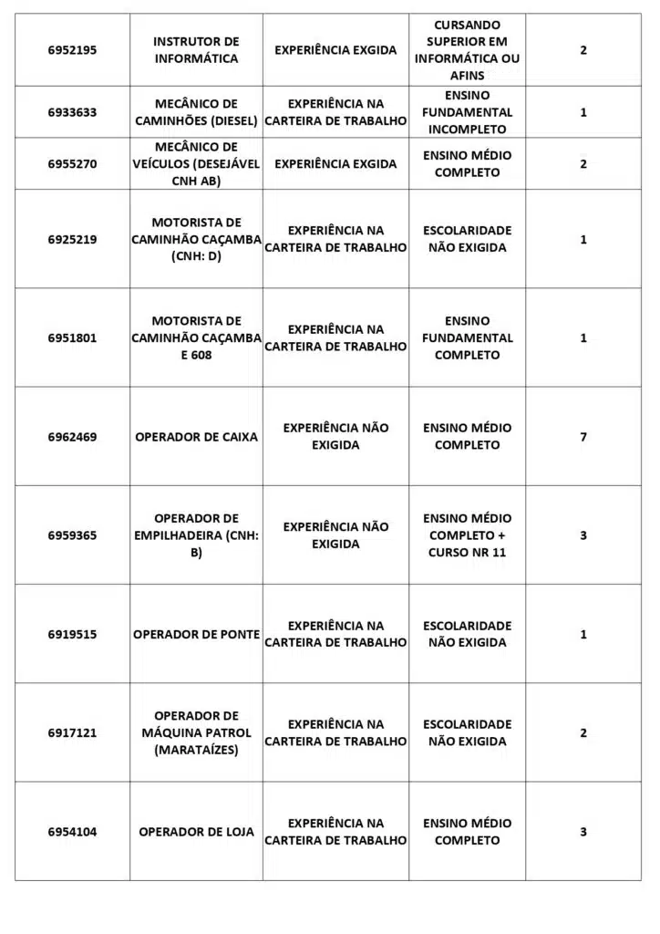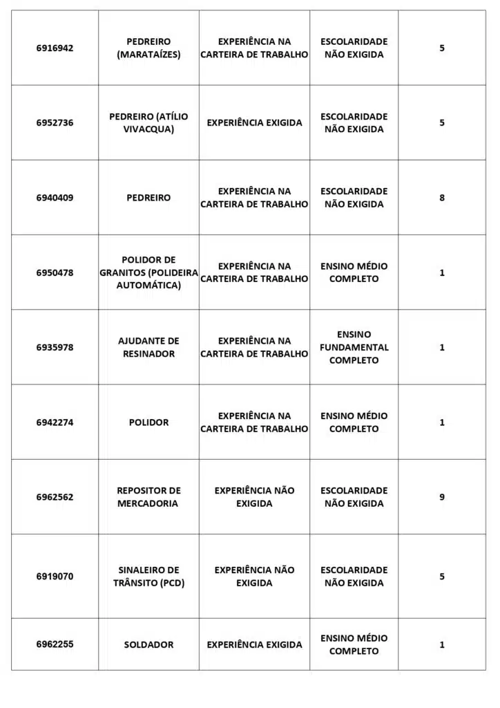 As oportunidades de emprego são para diversos cargos e níveis de escolaridade e para cidades do Sul do ES