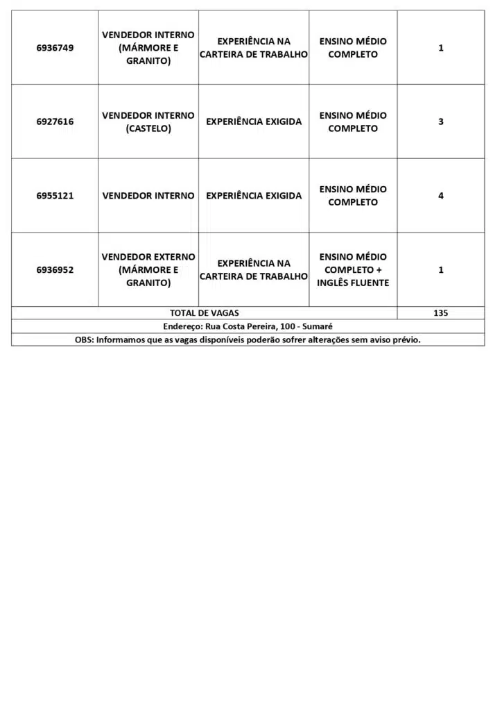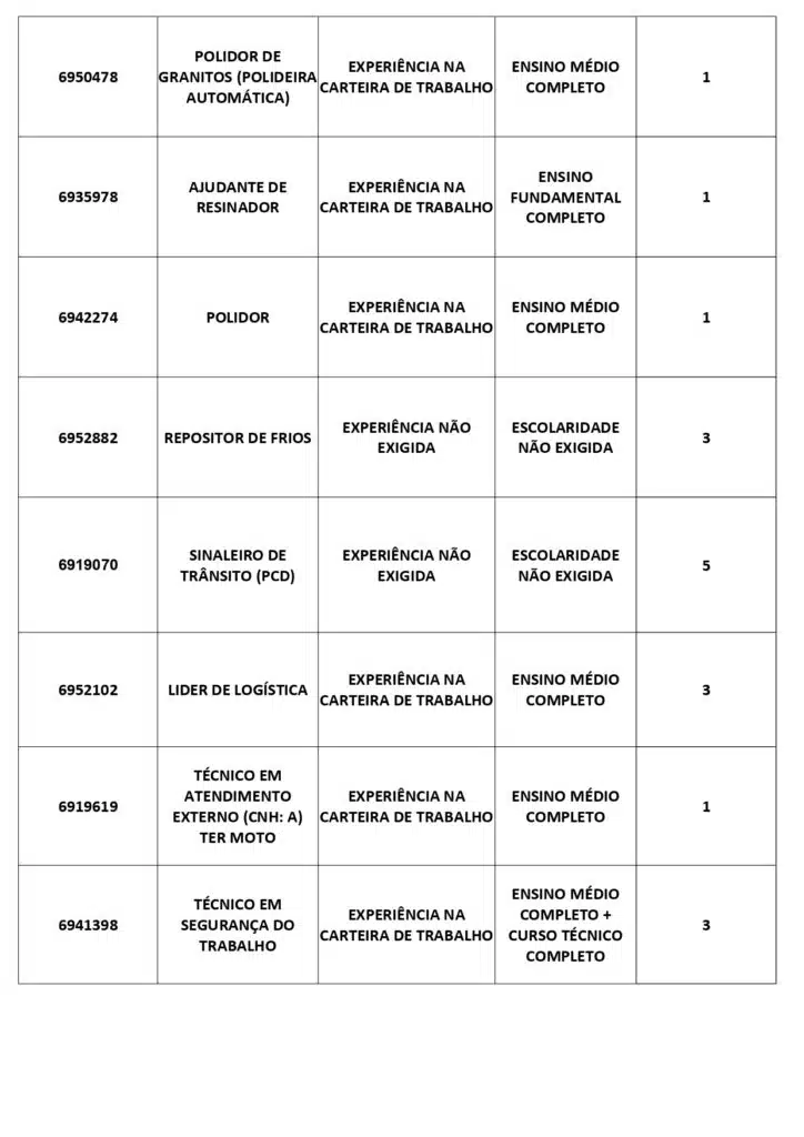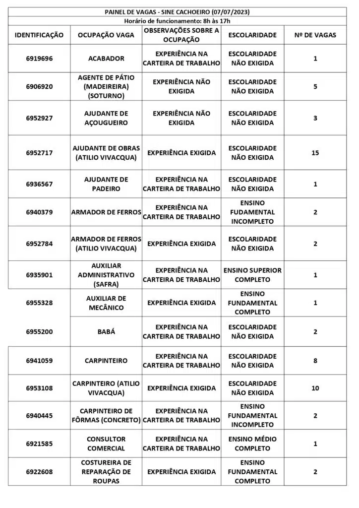 As oportunidades de emprego são para diversos cargos e níveis de escolaridade e para cidades do Sul do ES. No entanto, é preciso fazer um cadastro no Sine Cachoeiro para concorrê-las.
