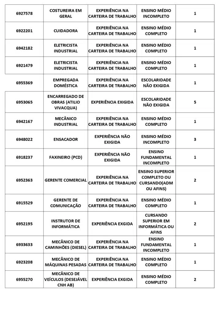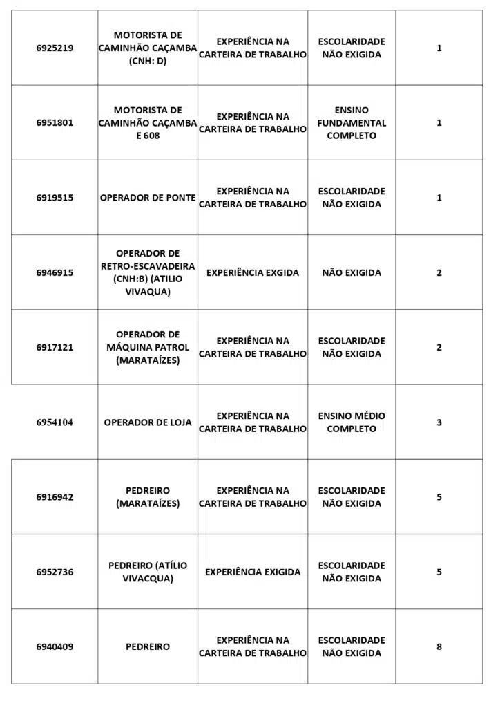 As oportunidades de emprego são para diversos cargos e níveis de escolaridade e para cidades do Sul do ES