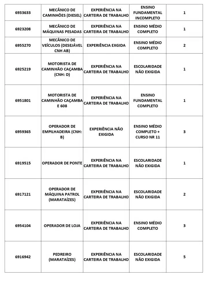 As oportunidades de emprego são para diversos cargos e níveis de escolaridade e para cidades do Sul do ES