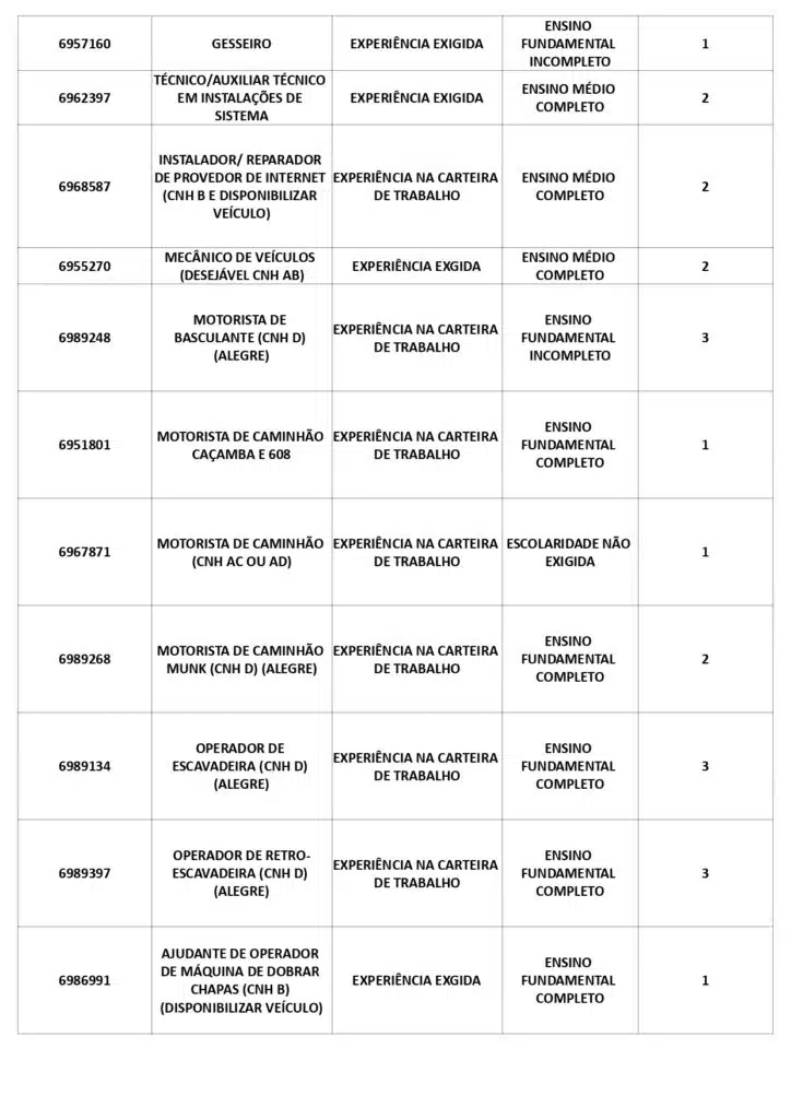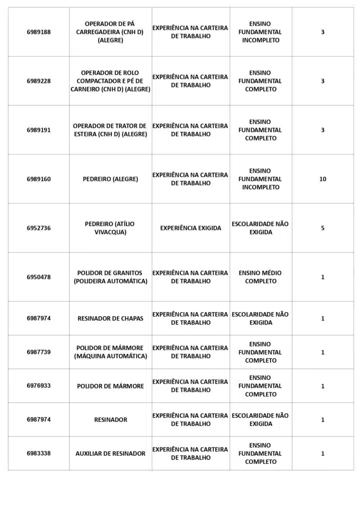 Receba as principais notícias no seu WhatsApp! clique aquiAs oportunidades de emprego são para diversos cargos e níveis de escolaridade e para cidades do Sul do ES. No entanto, é preciso fazer um cadastro no Sine Cachoeiro para concorrê-las.