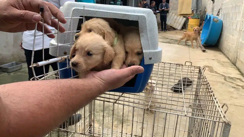 22 cachorros, a maioria da raça Golden, foram resgatados pela secretaria de Meio Ambiente do município. Oito fêmeas adultas e 14 filhotes foram levados para um hospital veterinário que tem convênio com a prefeitura. Segundo a prefeitura o canil não possui os alvarás adequados para comercialização de animais e já estava sendo investigado.