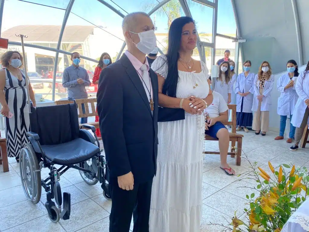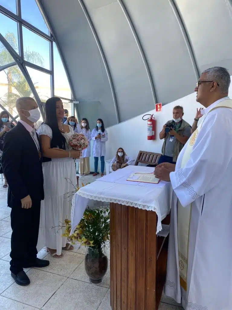 Receba as principais notícias no seu WhatsApp! clique aquiDiagnosticado com leucemia, Darcy precisou dizer sim à companheira dentro da capela do hospital. A cerimônia, organizada em menos de 12 horas, contou com a mobilização de uma grande equipe de profissionais do Vitória Apart.