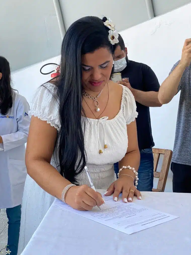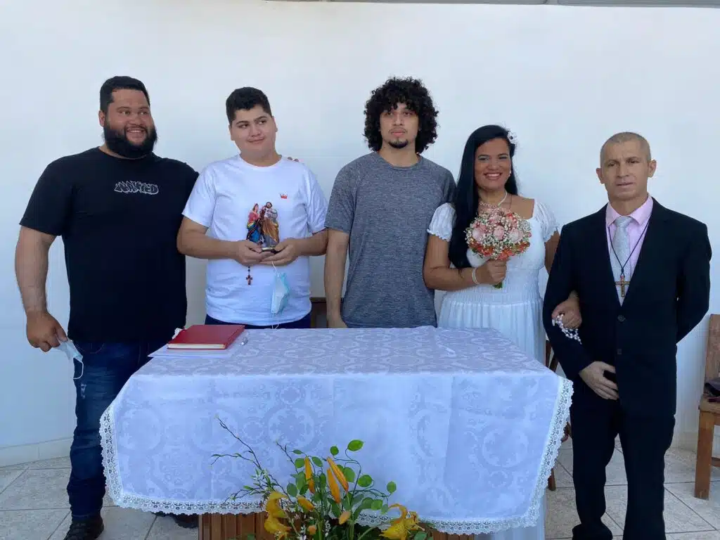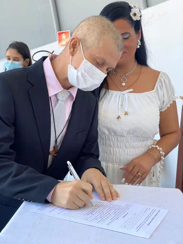 O casal está junto há 25 anos, tem três filhos, mas só oficializou a união na manhã desta quinta-feira (3), no Vitória Apart Hospital