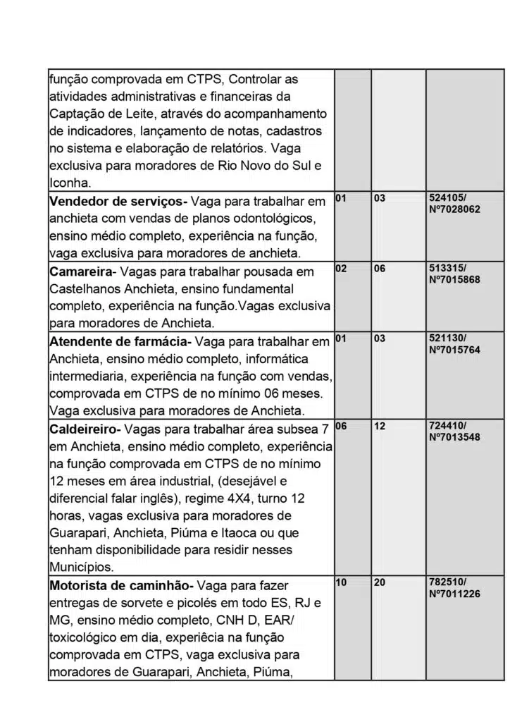 Confira as vagas de emprego disponíveis em Anchieta e região