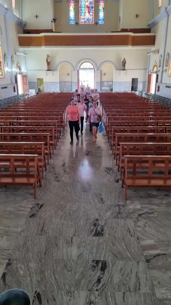 Mãe de jovem curada conseguiu juntar outras 19 mulheres para peregrinação até a Igreja Igreja Matriz Nossa Senhora da Penha, em Alegre, para pagar uma promessa feita há sete anos.