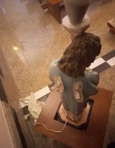 A imagem de Nossa Senhora teve seu rosário retirado das mãos e todo esse cenário abalou quem assistia ao culto religioso. Os militares foram acionados e contra o vandalo, já havia um mandado de prisão que vingava desde o ano de 2022.