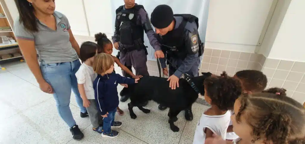 Além das atividades operacionais, o animal atuava em trabalhos sociais, como visitas a escolas da região para interagir com crianças durante palestras sobre segurança.