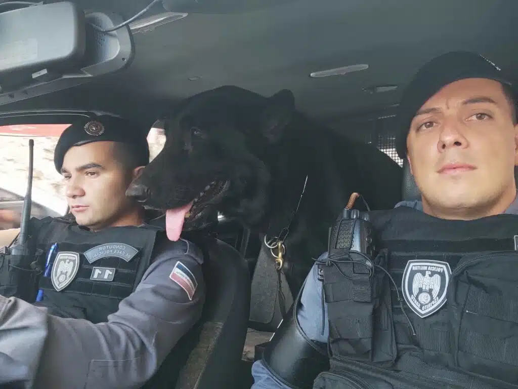 Azul, um Pastor Alemão, chegou à Companhia em 2019 e, desde então, passou a integrar as atividades policiais na busca por armas e drogas. Além das atividades operacionais, o animal atuava em trabalhos sociais, como visitas a escolas da região para interagir com crianças durante palestras sobre segurança.