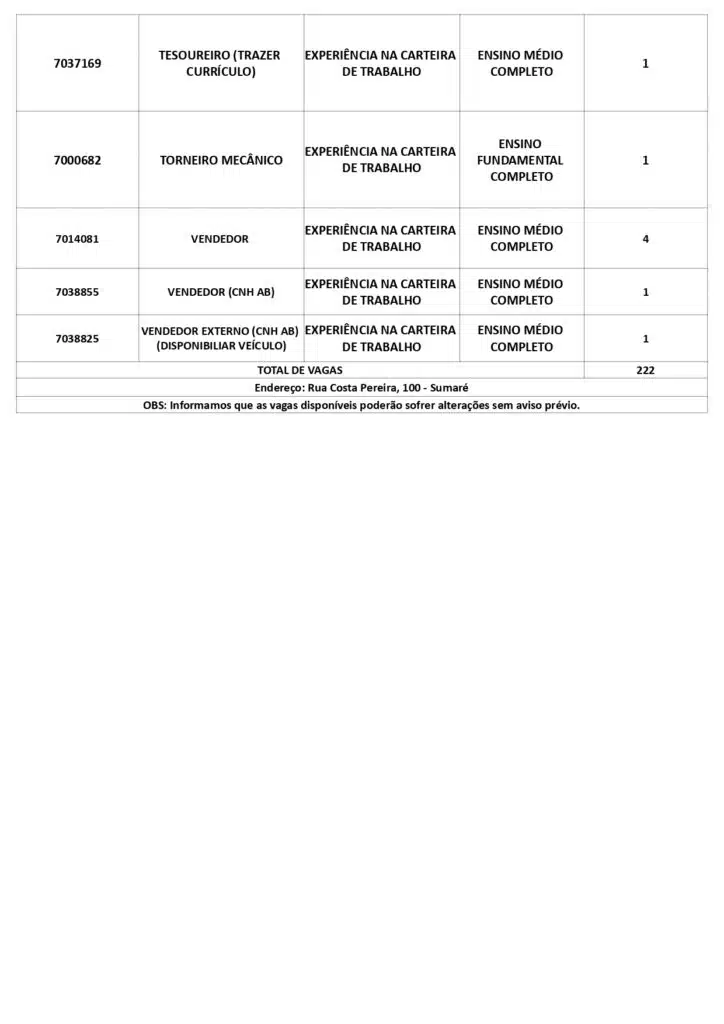 As oportunidades de emprego são para diversos cargos e níveis de escolarida