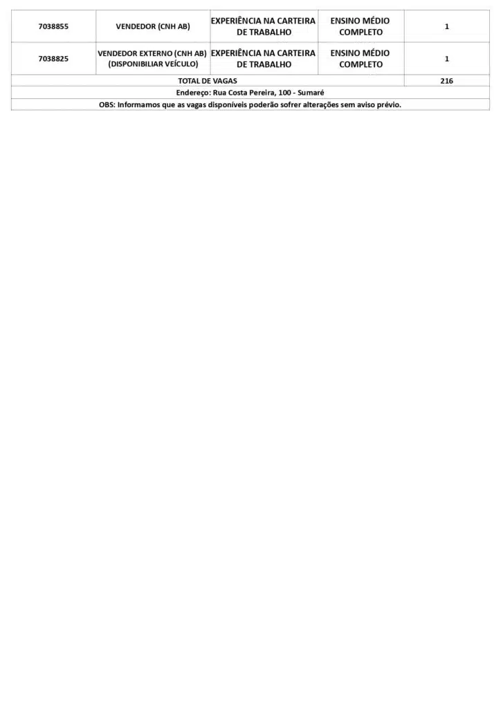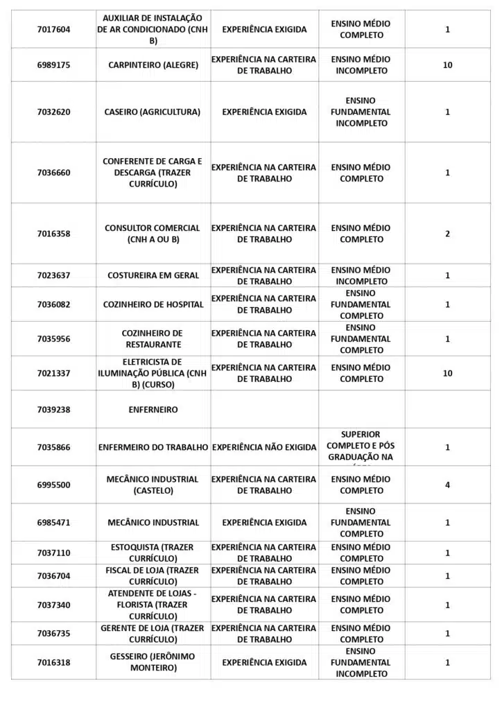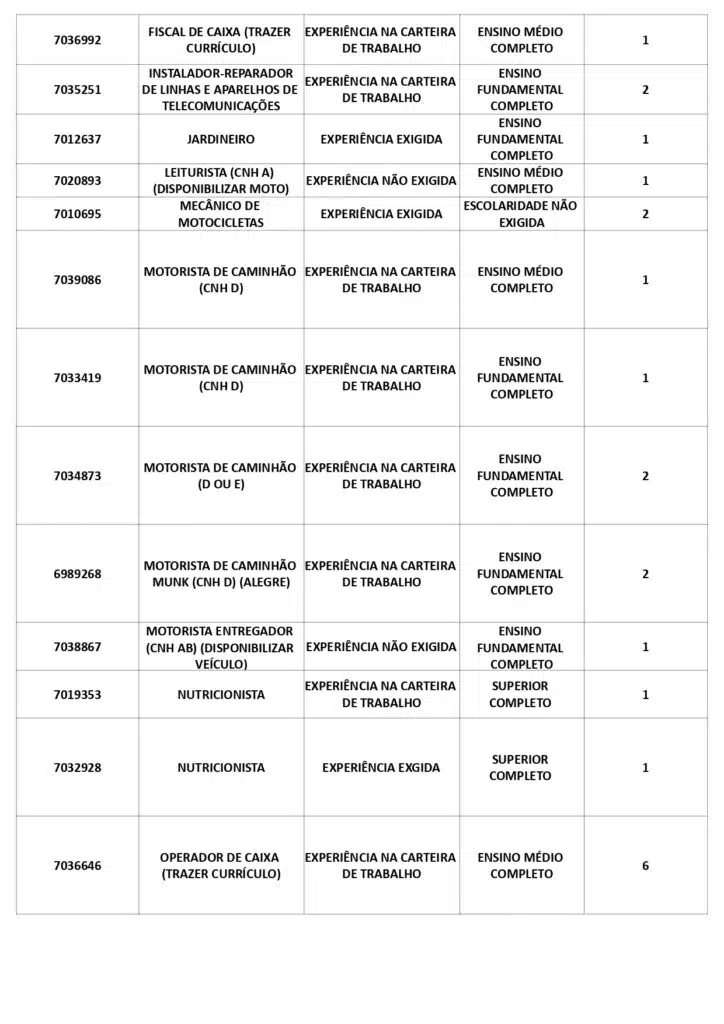 As oportunidades de emprego são para diversos cargos e níveis de escolaridade