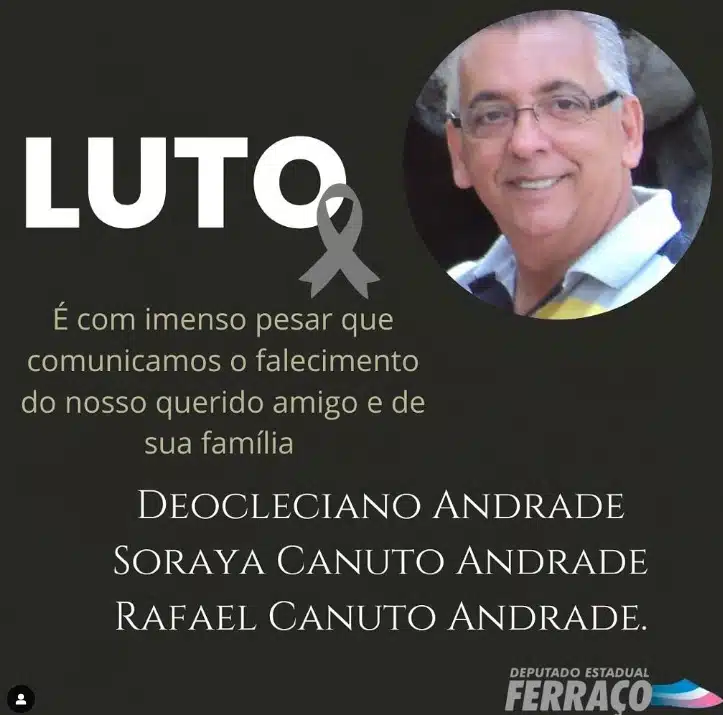 O deputado Estadual Theodorico de Assis Ferraço também se manifestou: “A tristeza por essa perda só não é maior do que a gratidão de poder ter convivido com uma pessoa tão excepcional. Que a família e amigos encontrem consolo e paz nesse momento tão triste. Deocleciano era muito querido e deixará saudades. Jamais esquecerei o que ele fez por mim, um amigo tão fiel. Recebam as minhas condolências e amor nesse momento. Não tenho palavras para expressar meu pesar e tristeza. Que vocês encontrem paz, conforto e o amor de Deus Nosso Pai do céu”.