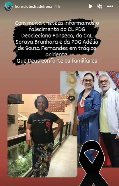 O Lions Clube Frade e a Freira, no qual as vítimas faziam parte, divulgaram uma nota de pesar. “Com muita tristeza, informamos o falecimento do CL PDG Deocleciano Fonseca, da CaL Soraya Brunhara e da PDG Adélia de Souza Fernandes. Que Deus conforte os familiares”.