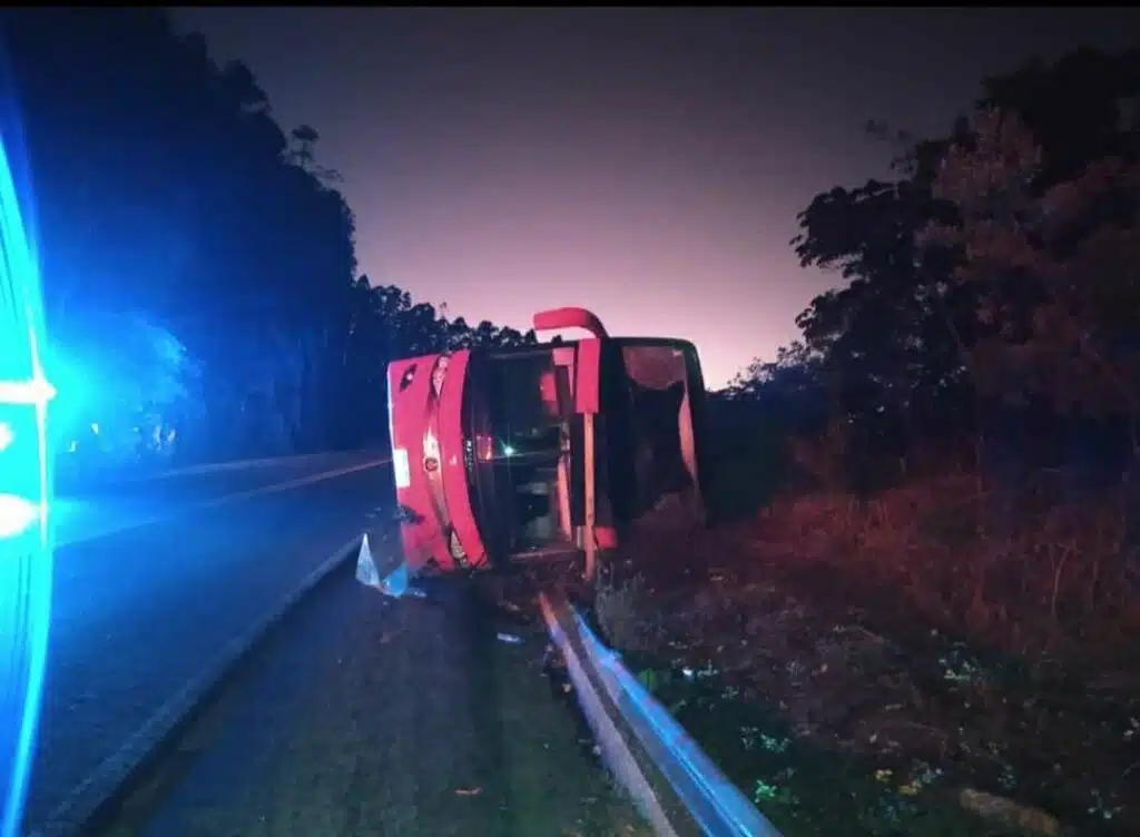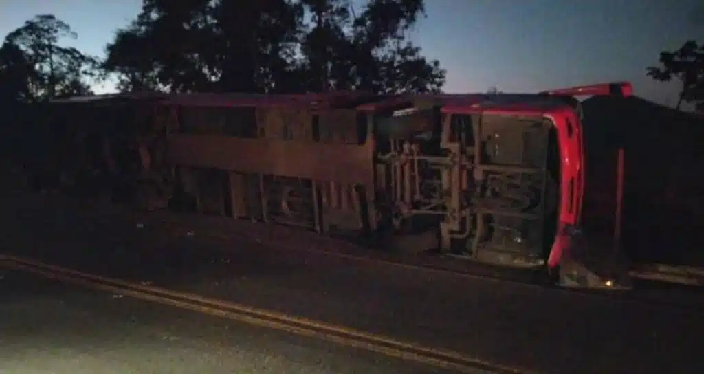 Um ônibus tombou às margens da rodovia BR-262, em Conceição do Castelo (Indaiá), neste sábado (5). De acordo com a Polícia Rodoviária Federal (PRF), o acidente aconteceu por volta das 04h50, nas imediações do km 115.