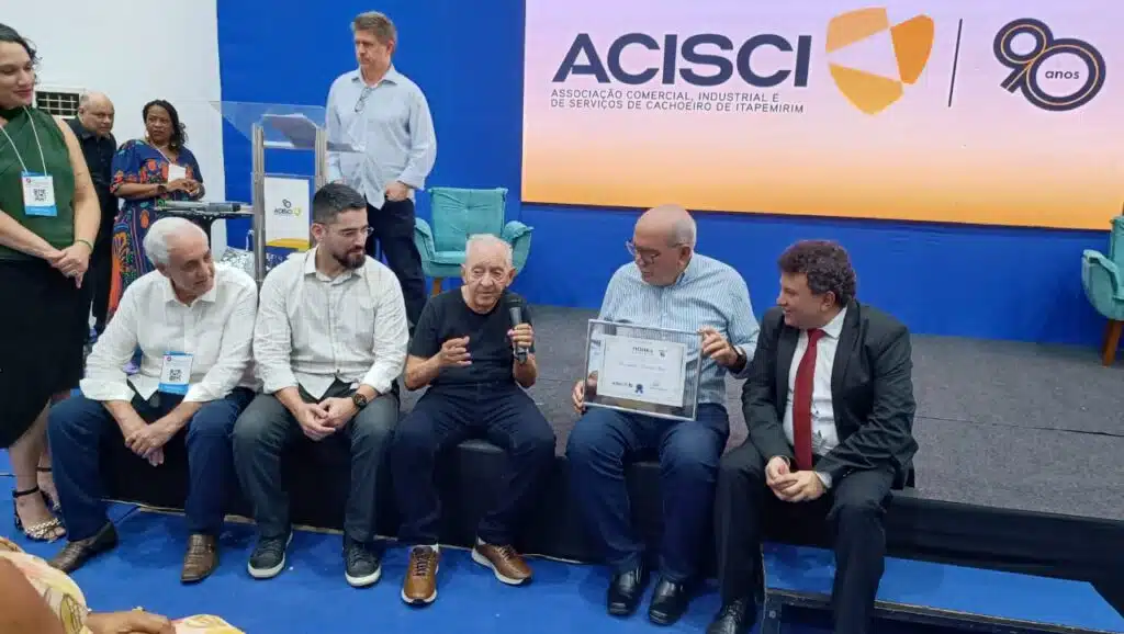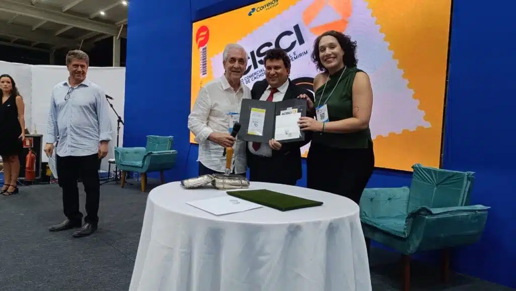 Receba as principais notícias no seu WhatsApp! clique aquiAlém de homenagens a importantes nomes do mercado empresarial do Espírito Santo, a noite de abertura do evento, nesta quarta-feira (27), também contou com o lançamento de um selo postal comemorativo, feito pelos Correios, em homenagem aos 90 anos de serviços prestados pela Associação Comercial, Industrial e de Serviços de Cachoeiro de Itapemirim (ACISCI) para o desenvolvimento econômico e social da cidade.