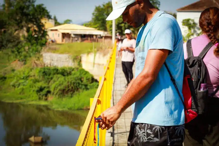 Os caminhantes percorreram um trajeto de oito quilômetros entre a Igreja São Miguel Arcanjo, no distrito de Itaoca, e a localidade de Usina São Miguel, no distrito de São Vicente. Antes da caminhada, os participantes se prepararam com um café da manhã comunitário e exercícios de aquecimentos e alongamento.