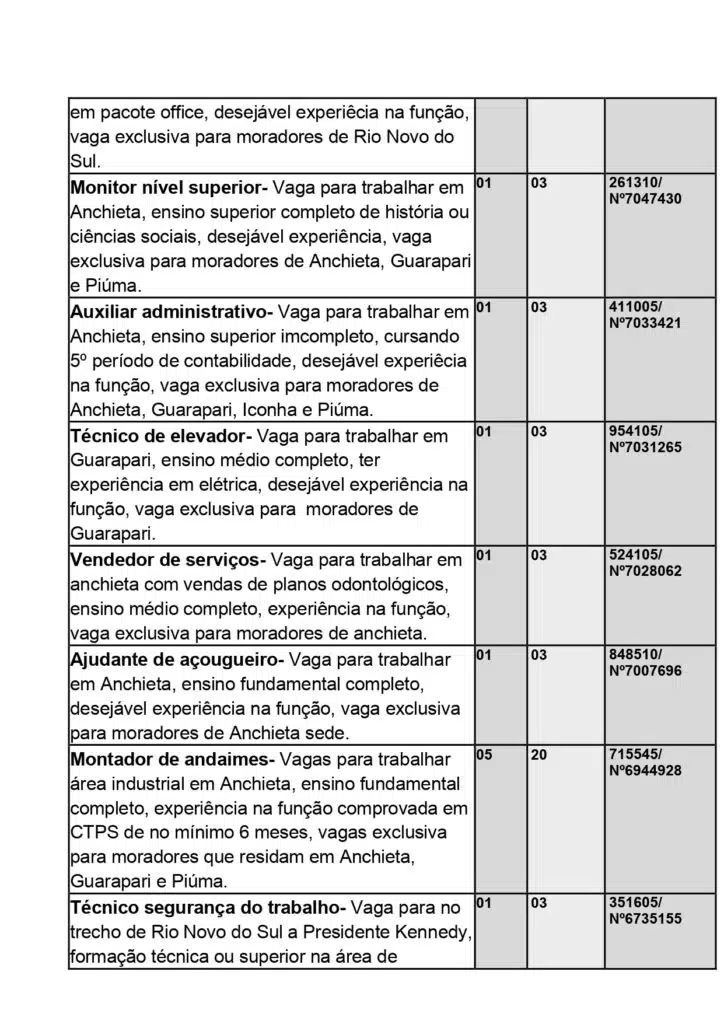 Ainda segundo o Sine Anchieta, as vagas de empregos poderão sofrer alteração sem aviso prévio. Além disso, para cada oportunidade, há um limite de encaminhamento especificado pela empresa.