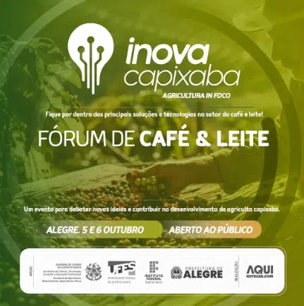 O Fórum Café & Leite, do Programa Inova Capixaba – Agricultura in Foco, vai tomar conta da cidade de Alegre no início do mês de outubro. A programação conta com uma série de propostas, soluções e tecnologias para setores chave da economia da região do Caparaó e do Sul do Estado.