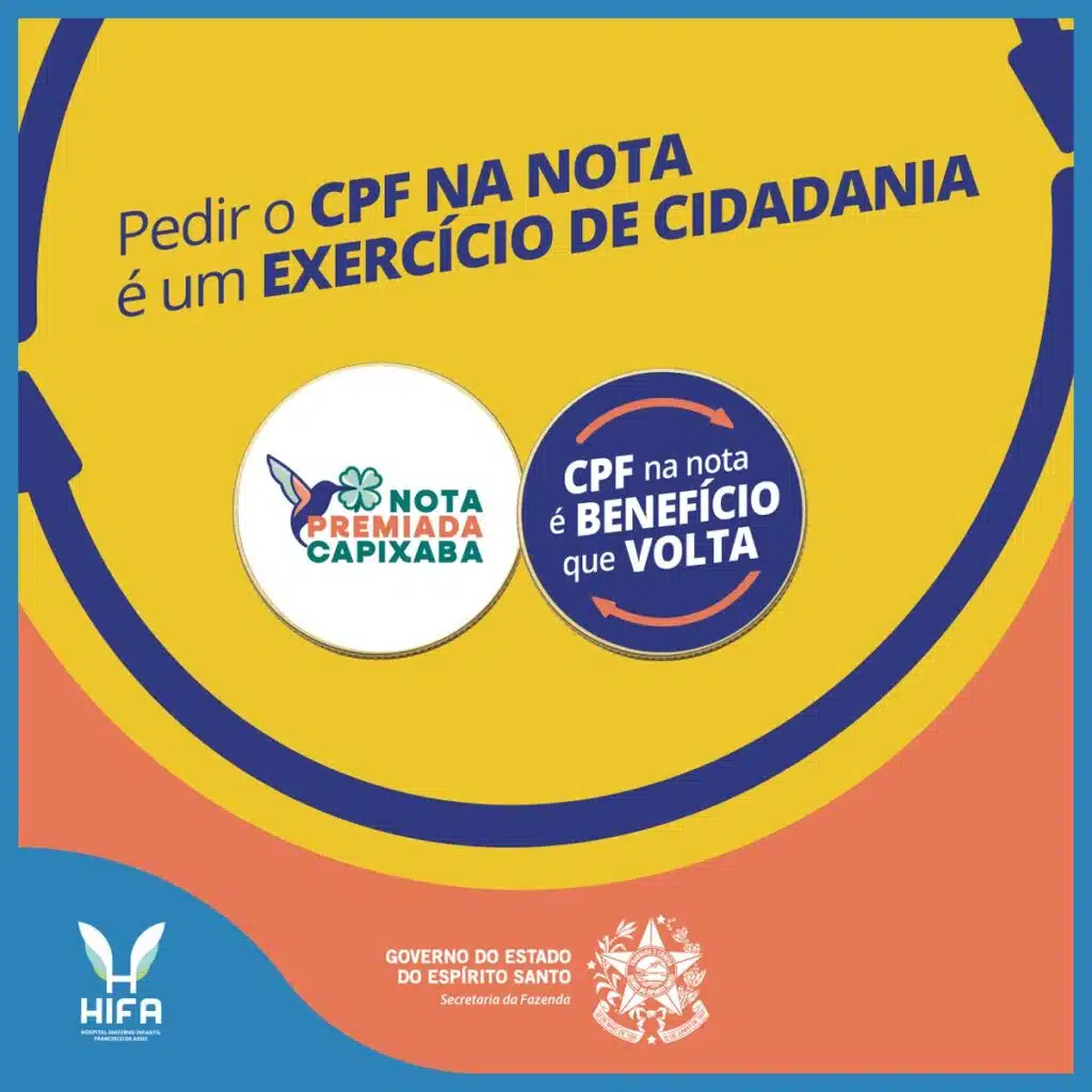Se você ainda não participa do Nota Premiada é simples! Basta cadastrar o seu CPF no site www.notapremiadacapixaba.es.gov.br e solicitar a inclusão do seu CPF nas compras realizadas em estabelecimentos capixabas. Participe!