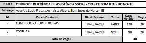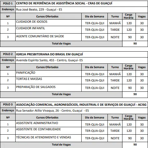 Guaçuí (270 vagas)