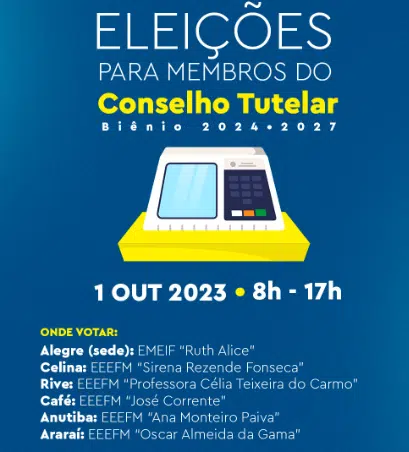 O Conselho Municipal dos Direitos da Criança e do Adolescente (COMCRIAA) de Alegre vai realizar as eleições dos membros do Conselho Tutelar, que ficam na atribuição nos próximos quatro anos, entre 2024 e 2027.