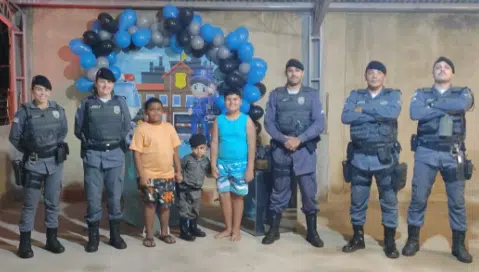 Menino de Alegre realiza sonho com aniversário temático da PM