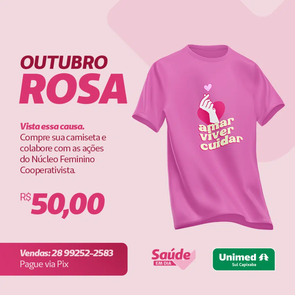 Outubro Rosa: camisas à venda no Núcleo Feminino da Unimed