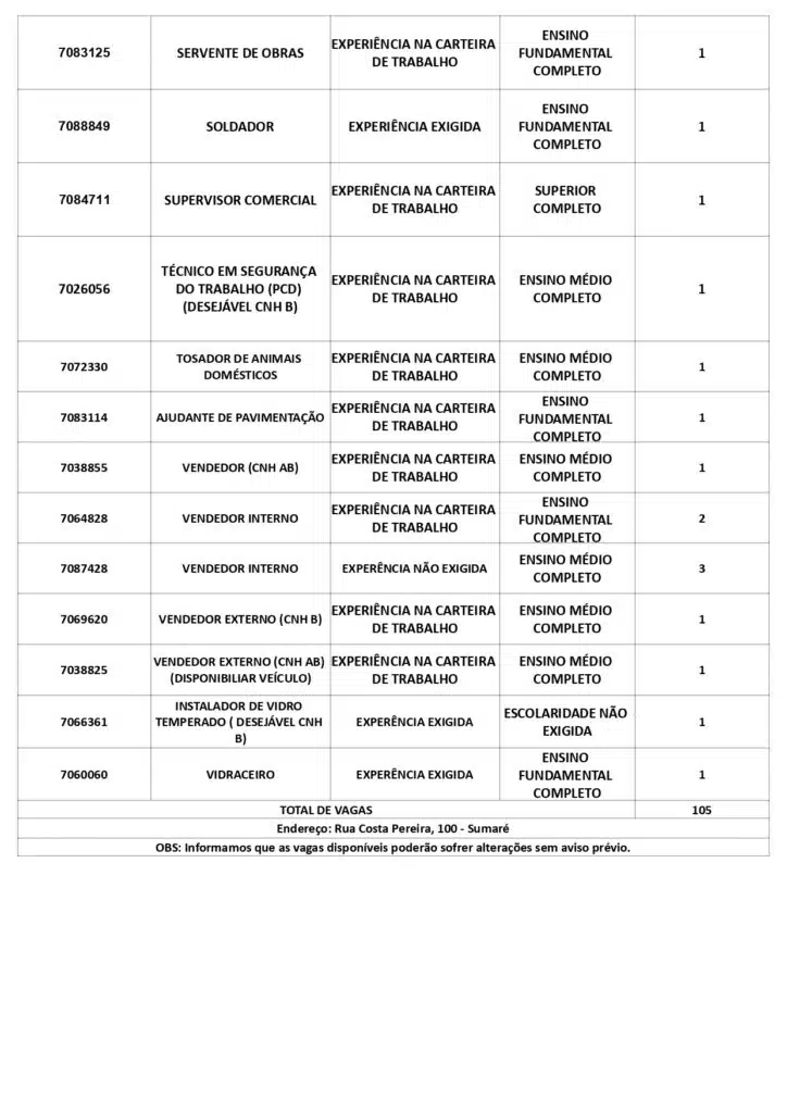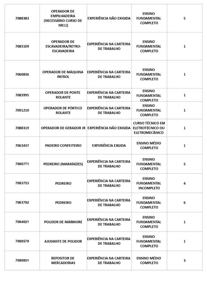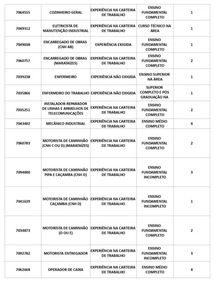 As oportunidades de emprego são para diversos cargos e níveis de escolaridade