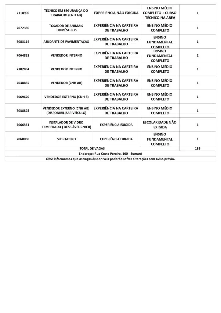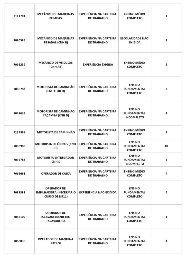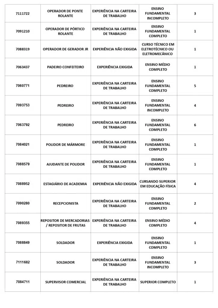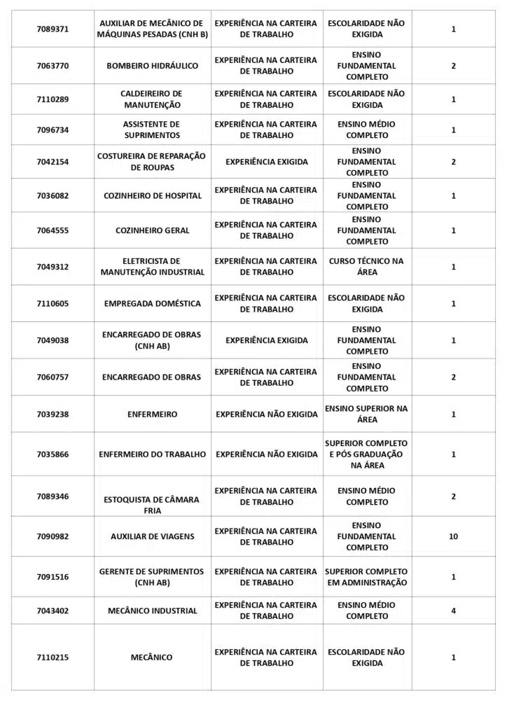 As oportunidades de emprego são para diversos cargos e níveis de escolaridade
