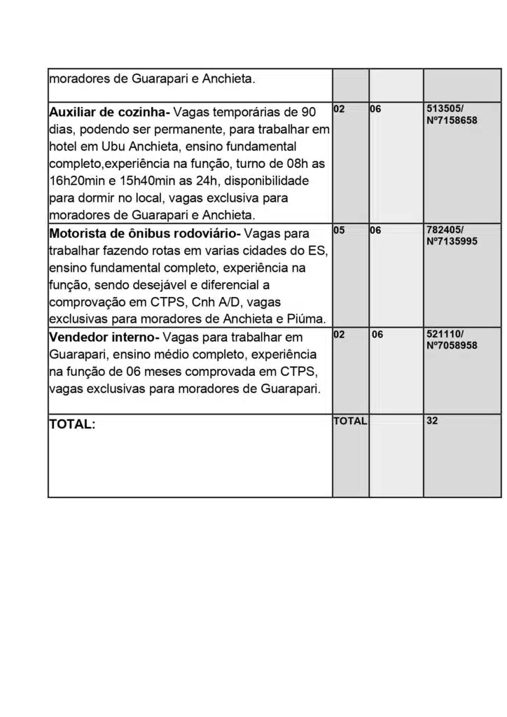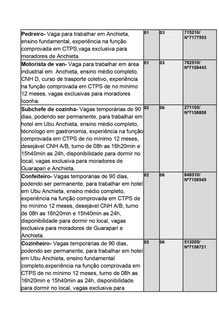 Ainda segundo o Sine Anchieta, as vagas de empregos poderão sofrer alteração sem aviso prévio. Além disso, para cada oportunidade, há um limite de encaminhamento especificado pela empresa.